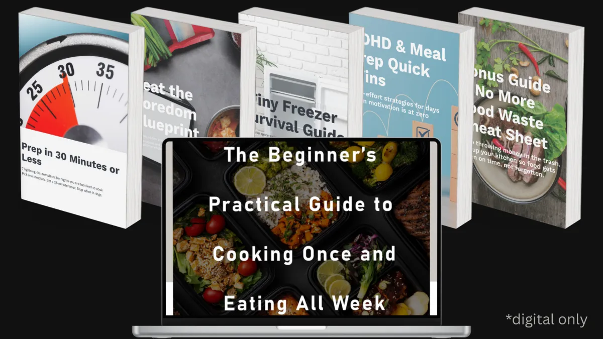 The Complete Beginner’s Practical Guide: A 5-week, step-by-step system that shows you how to prep smarter, save money, and eat better without overwhelm.